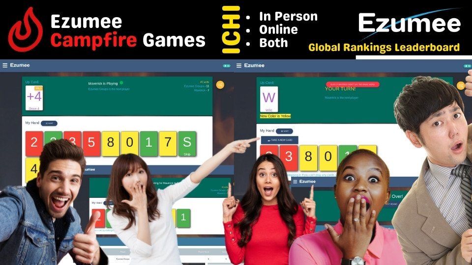 The word for the number one in Japanese is "ichi". This is a card game based off a popular card game where you have to say the Spanish word for one when you only have one card left after playing a card. You know the game, but in our game you call out Ichi ! -- there are colored numbers and you have to match either the color or number of the previous card in your play. You can Skip other players, Reverse the flow of card play, use a Wild card to change the color, or force the next player to draw 2 or 4 cards. Anyone can start a game in most Ezumee branded groups